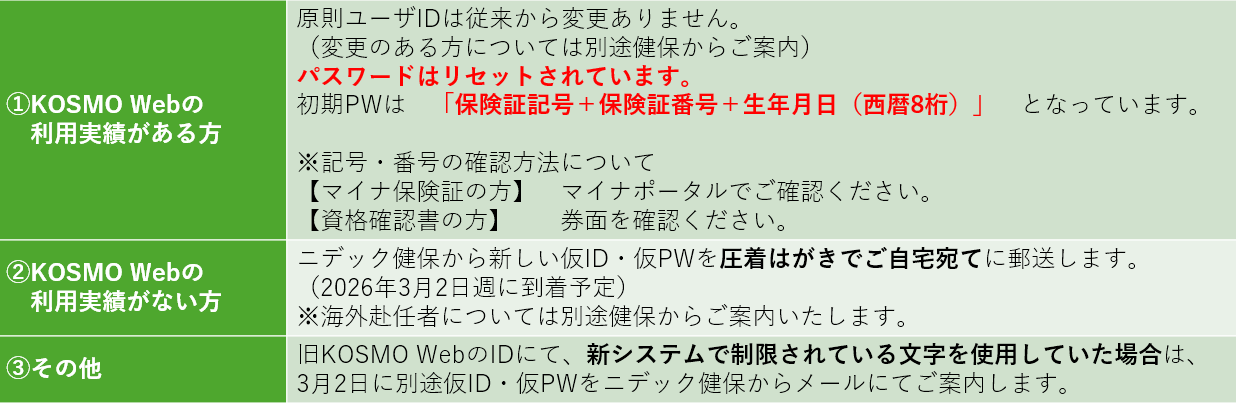 - KOSMO WebのID・パスワード、ログイン方法等の変更について