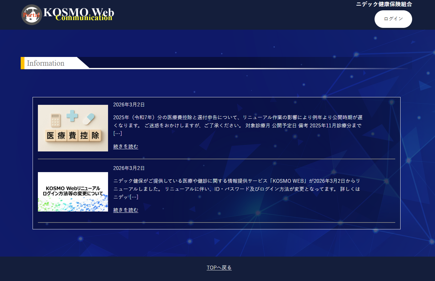 KOSMO Webリニューアルに伴い、ログインボタンを変更しています。